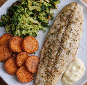 Deze maaltijd is een mooi voorbeeld van hoe eenvoud en balans samenkomen op je bord. Knapperige zoete aardappel, geroosterde broccoli met goudbruine randjes en een zachte Alaska koolvisfilet vormen samen een lichte, voedzame AVG die vriendelijk is voor je buik en toch goed verzadigt.