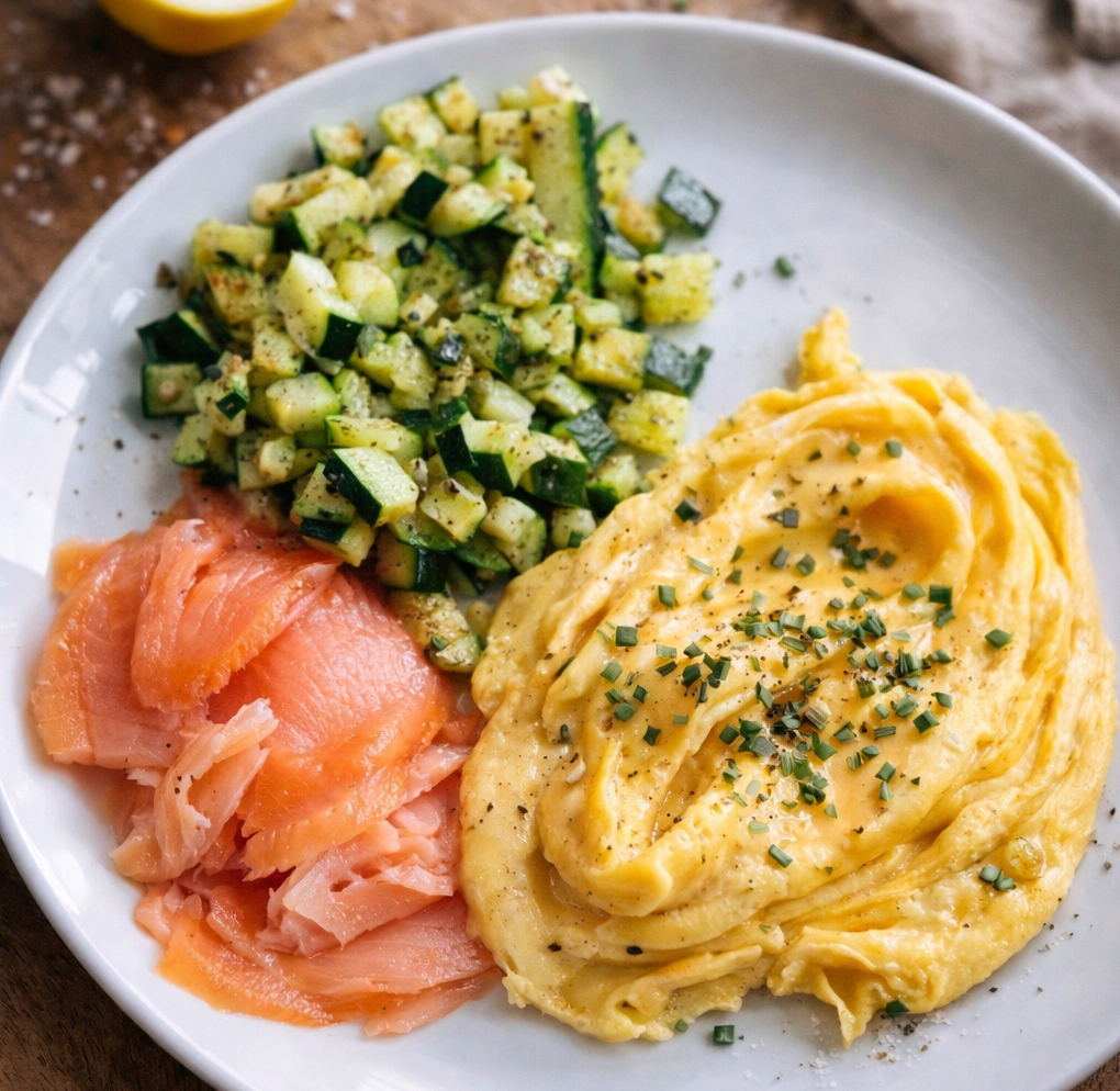 Ei-roosje met courgette en gerookte forel